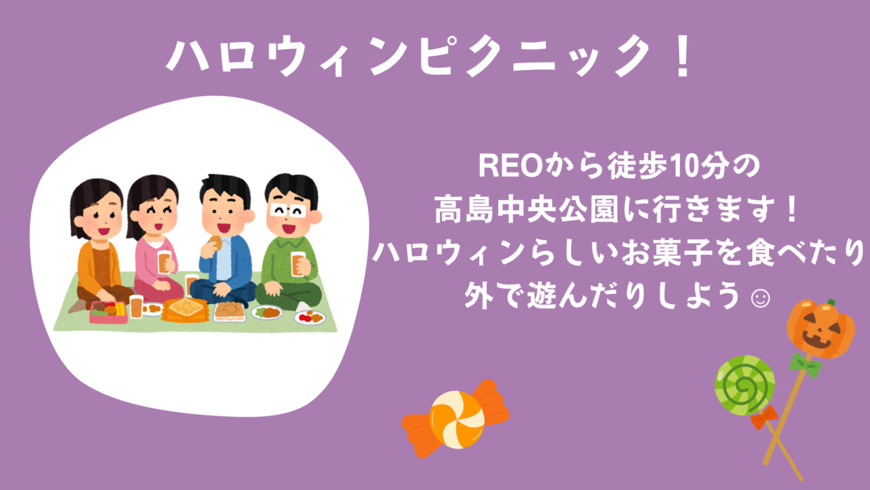 - 内容:ハロウィンピクニック(おやつ・フリスビー・バドミントン など)